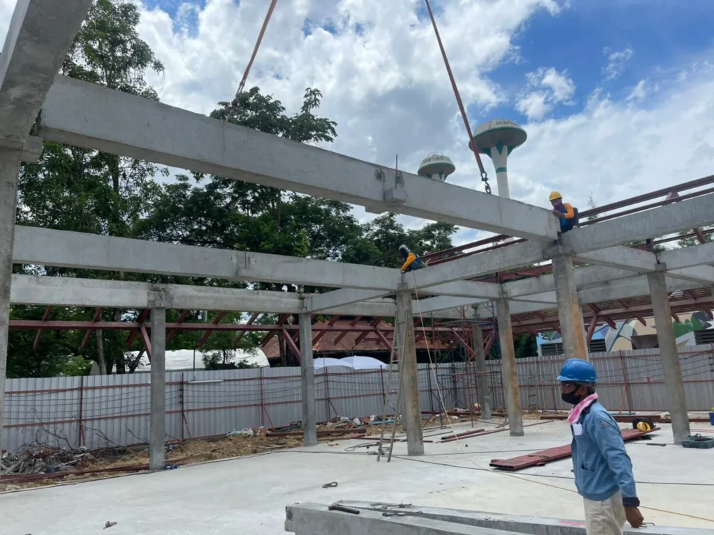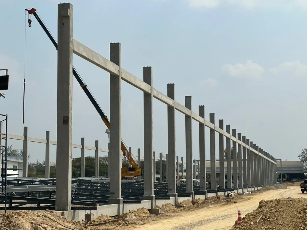 เสาและคานคอนกรีตสำเร็จรูปที่ออกแบบและผลิตให้เหมาะสมกับลักษณะอาคารของลูกค้าแต่ละโครงการ ผลิตจากโรงงานของเราเองภายใต้การควบคุมคุณภาพทุกขั้นตอน ช่วยเพิ่มความแม่นยำของงานโครงสร้าง ลดระยะเวลาก่อสร้าง และลดความเสี่ยงจากงานหน้างาน