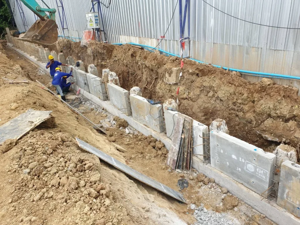 - ผนังกันดินแบบ Dubble Wall เพื่อให้มีความหนา