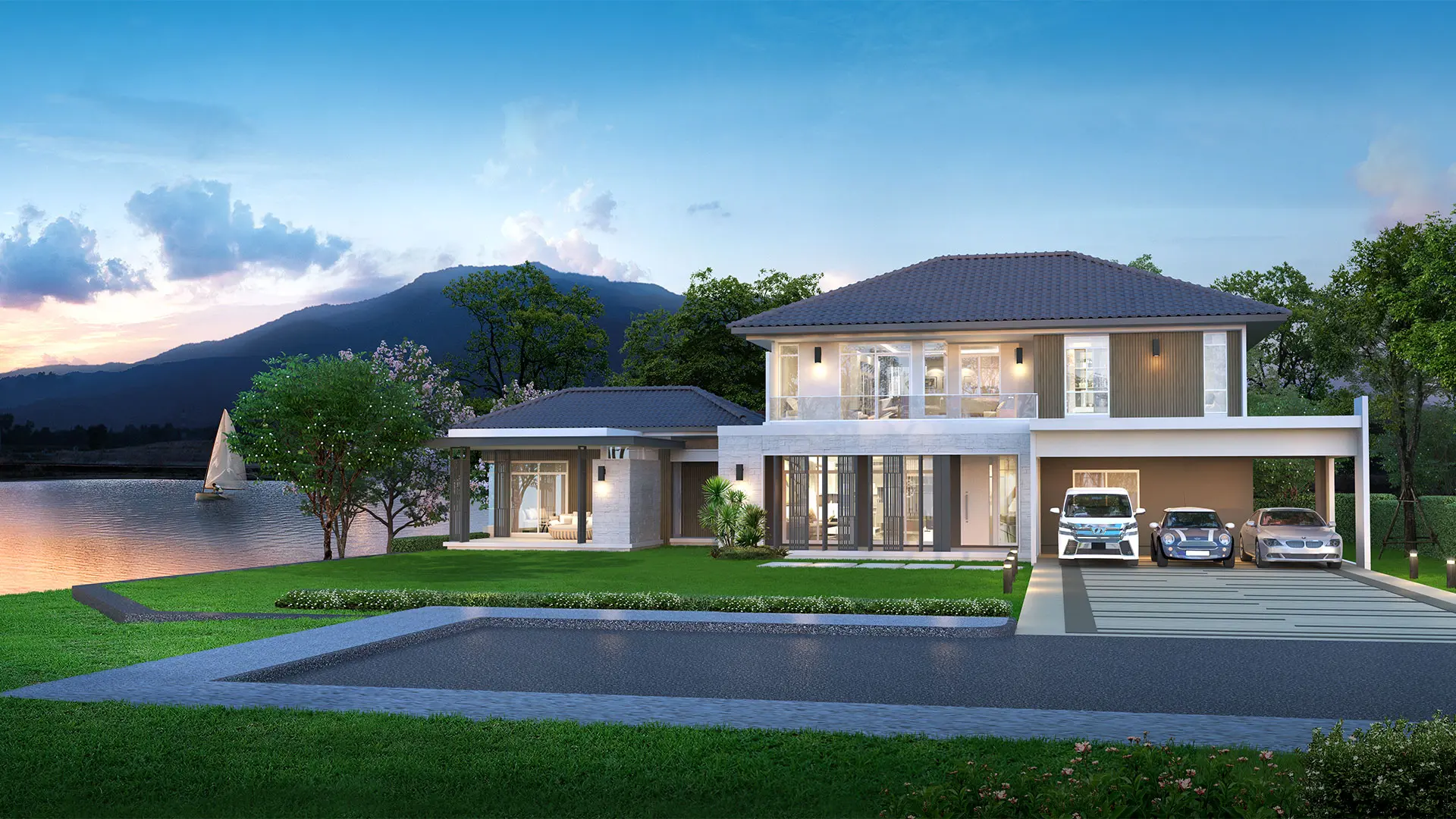 乡村风格的住宅项目,氛围宁静祥和,空间设计老少皆宜